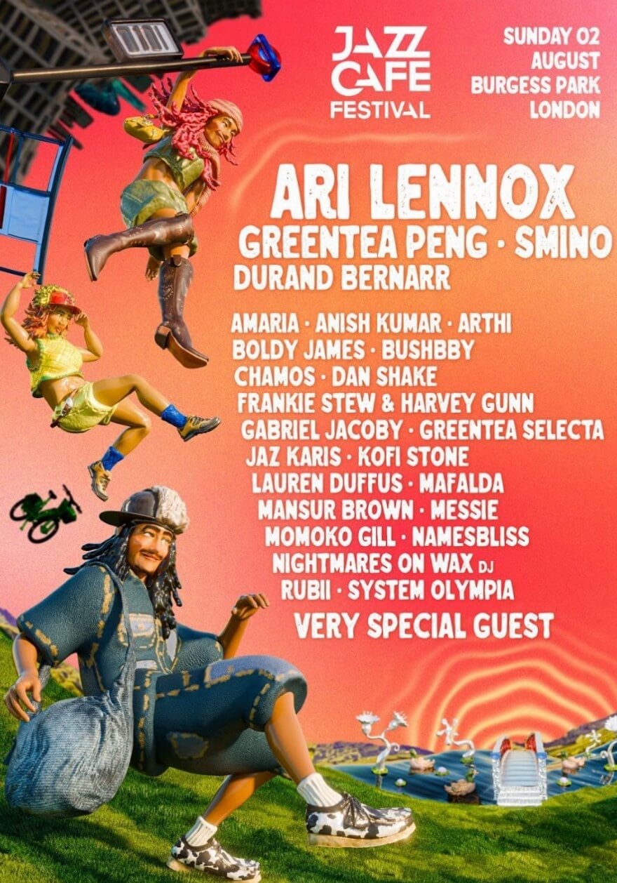 Head­lining this year’s Jazz Café Fest­iv­al main stage is R&B song­stress Ari Len­nox. The fest­iv­al  is set to be Lennox’s only UK date of 2026 and will see her per­form tracks from her highly regarded new album Vacancy. This year’s female-lean­ing lineup con­tin­ues with Green­tea Peng, whose soul­ful energy has cap­tiv­ated audi­ences. Also fea­tured is Amer­ic­an sing­er-song­writer and pro­du­cer Dur­and Bern­arr, along with BRIT School alumni Jaz Karis, and cap­tiv­at­ing per­form­ances from Mansur Brown, Gab­ri­el Jac­oby, Amaria and  Momoko Gill.